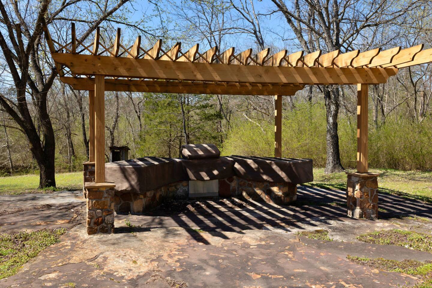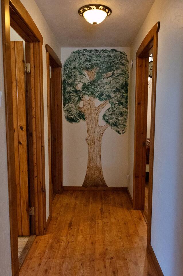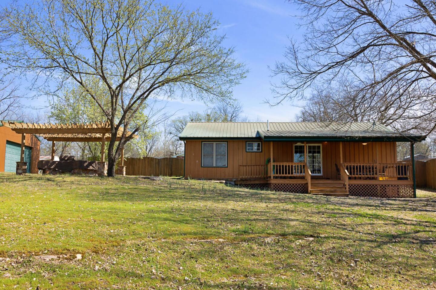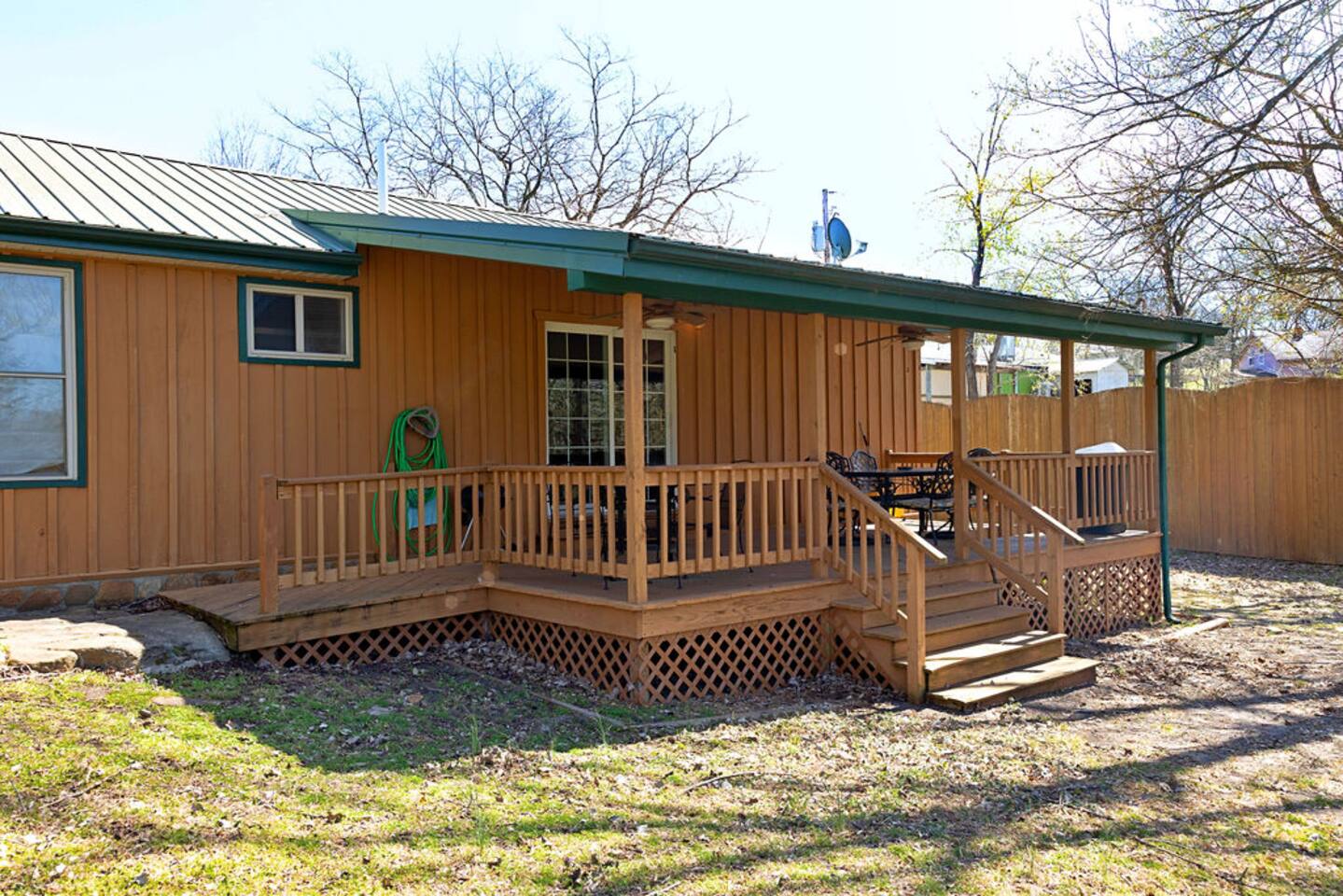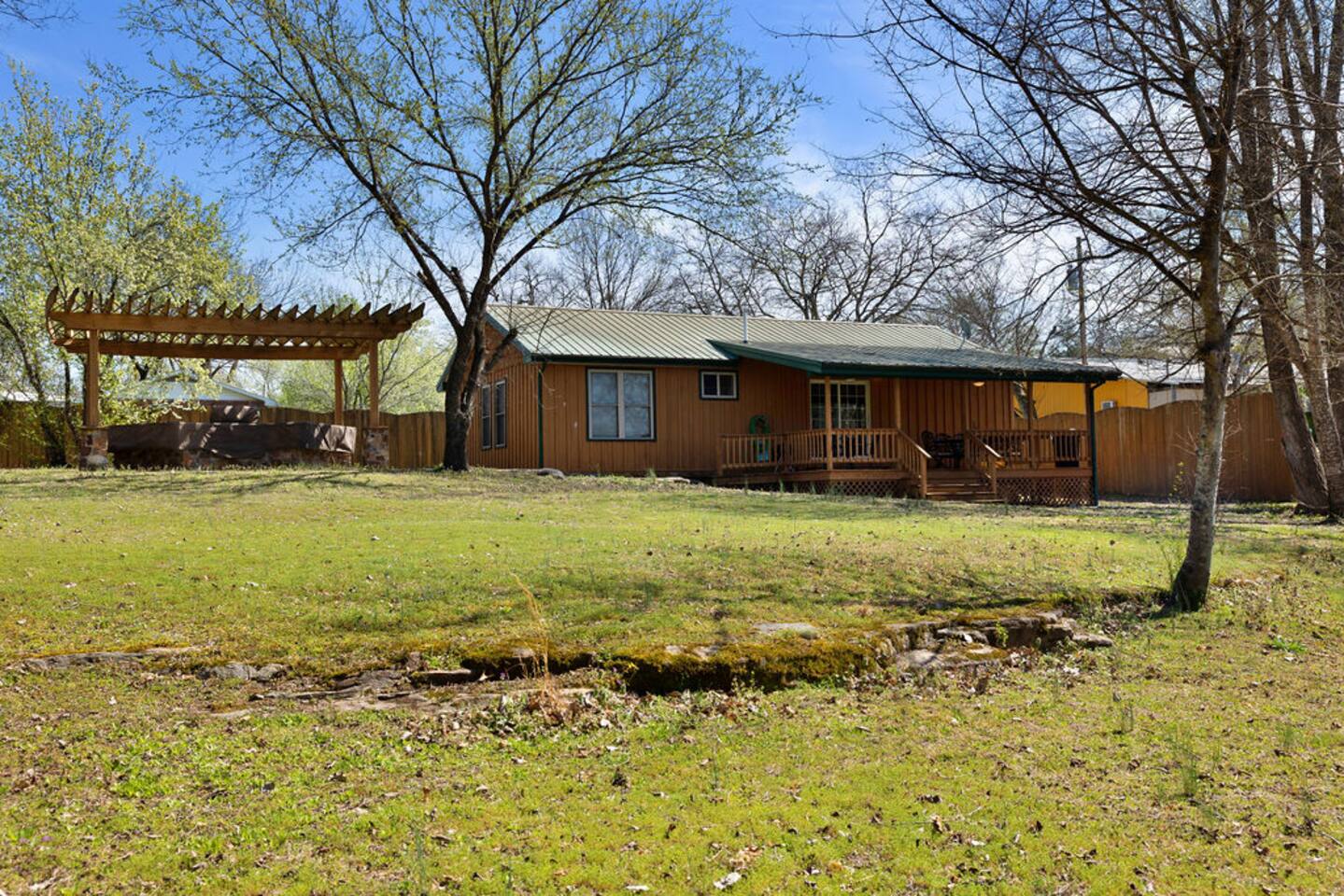 You can utilize the entirety of the property including the house, the porches, and the backyard up to and including the creek.